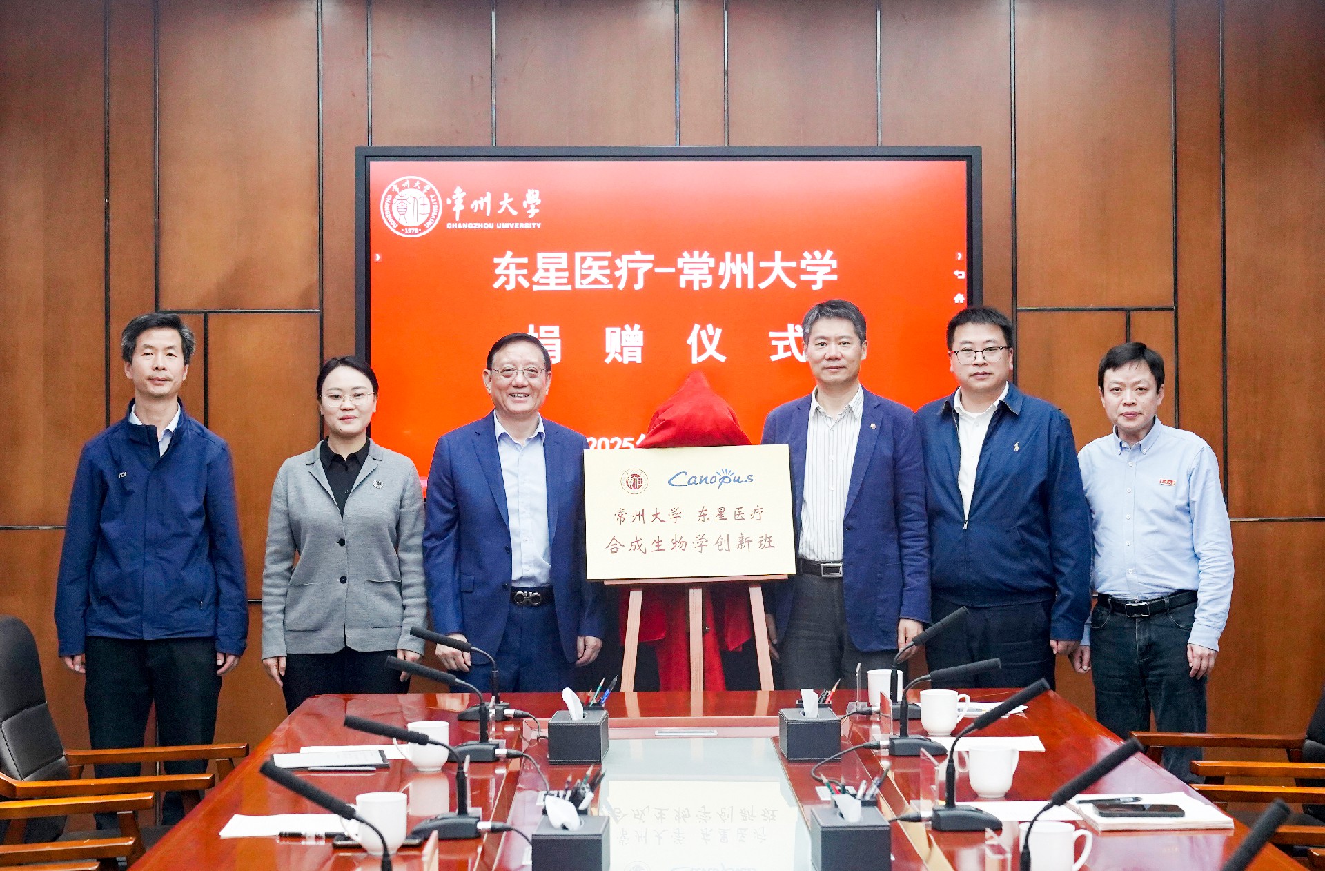 會議首先由校企雙方代表簽署協議,并為“BG大游集團醫療—合成生物學創新班”揭牌,BG大游集團醫療向常州大學捐贈100萬元,專項支持合成生物學創新班建設發展。常州大學聘任公司董事長萬世平、總經理魏建剛、副總經理龔愛琴、萬正元為兼職教授。